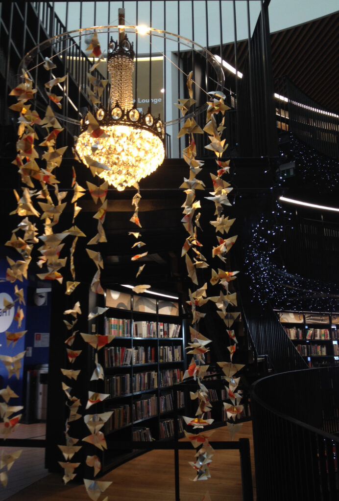 A touring participatory exhibition, with a Cabinet of Curiosities and collaborative artworks including performances, an online book of remembrance and an Empire Chandelier with origami butterflies, supported by Arts Council England and local authorities across the Midlands.